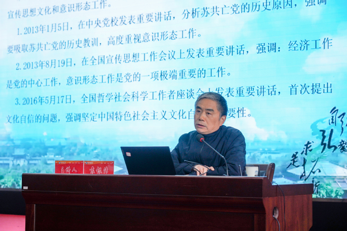 袁银传从习近平总书记关于文化和意识形态工作的重要论述、当代文化交流交融交锋与维护国家意识形态安全、提升中国文化软实力的基本路径等维度作了系统深入、精辟透彻的阐述。
