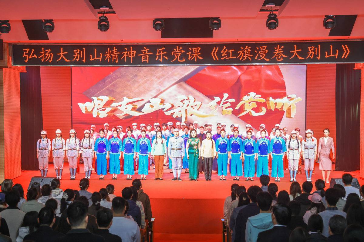 3月14日下午,武汉大学人文馆,红色旋律响彻春日的珞珈山。由黄冈师范学院师生精心编排、倾情演绎的音乐党课《红旗漫卷大别山》正在这里开演,9首经典歌曲串联起大别山地区28年红旗不倒的峥嵘岁月。
