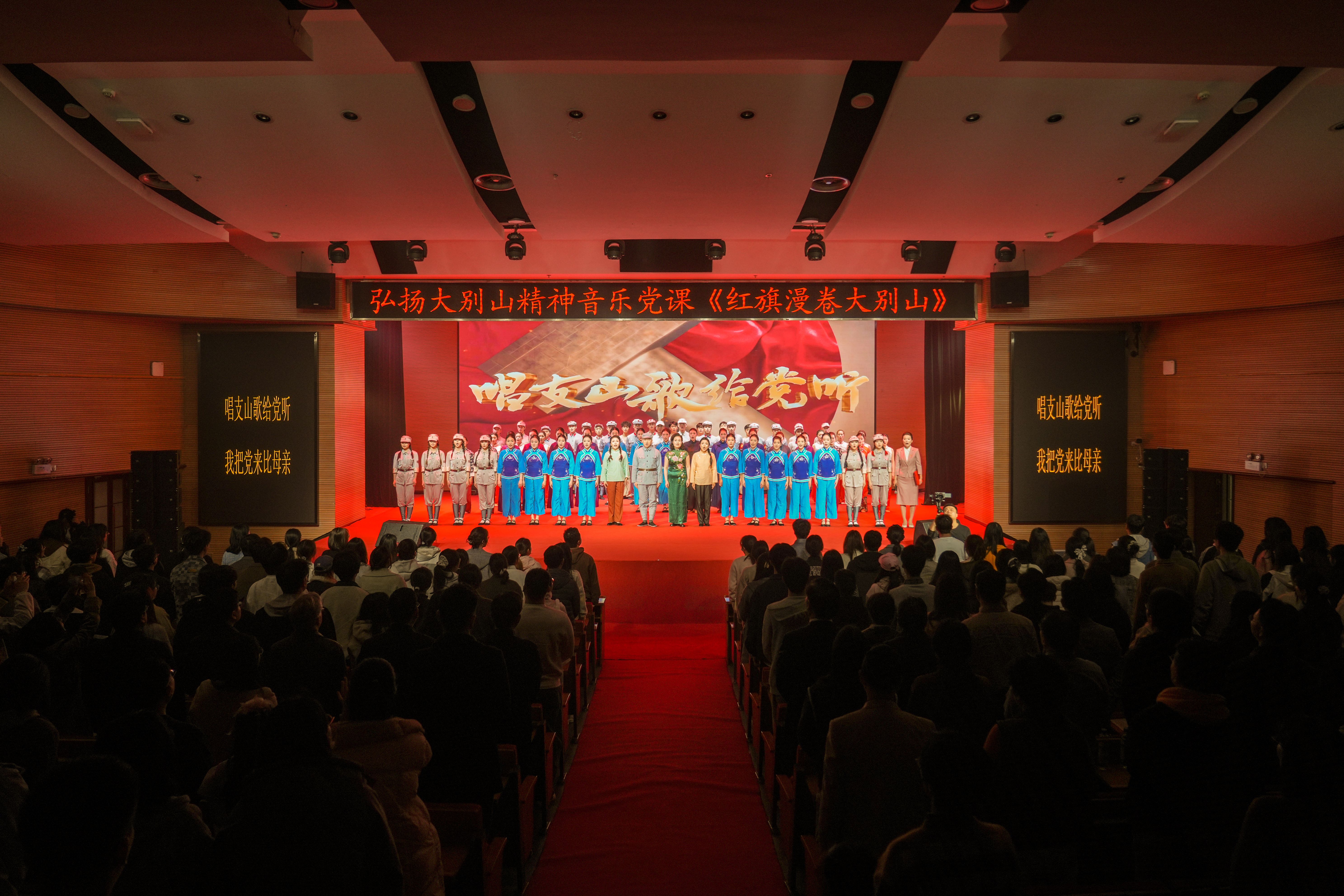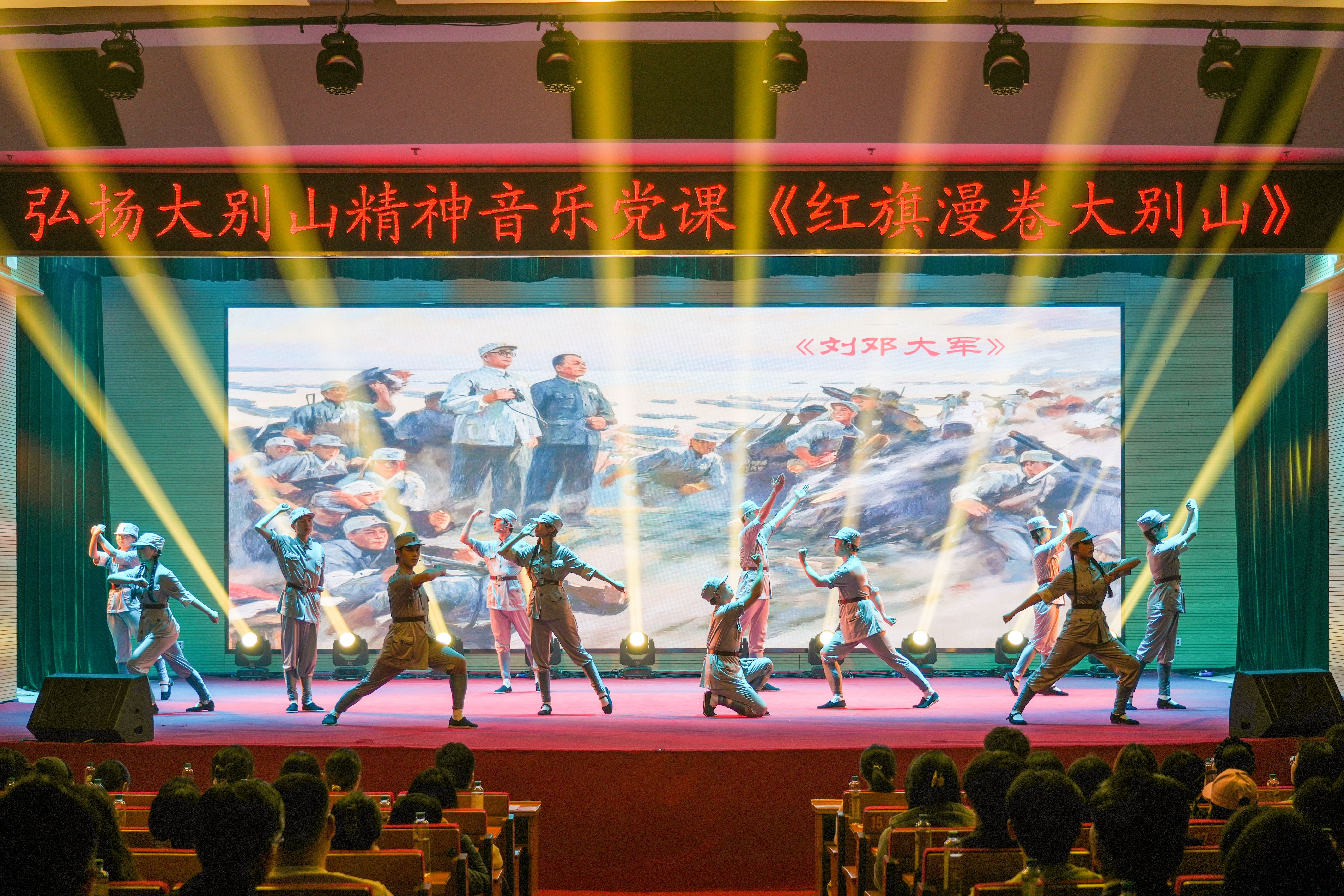 本场演出以“红旗漫卷大别山”为主题,共分“先驱播火,唤起工农跟党走”“不胜不休,苏区红军勇战斗”“孤悬敌后,抗日劲旅歼倭寇”“勇当前锋,千里跃进利剑飕”四个篇章,以音乐为纽带、历史为根基,通过《董必武回黄安》《八月桂花遍地开》《三大纪律八项注意》等九首经典歌曲串联1921年至1949年大别山地区新民主主义革命历程。