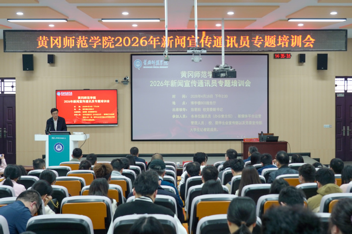 本网讯 4月16日下午,我校在博学楼B03报告厅举行2026年新闻宣传通讯员专题培训会。校党委副书记陈朝阳出席会议并讲话,中国教育在线华中区主编刘丁丁、楚天都市报极目新闻黄冈记者站站长王永胜受邀作专题报告。