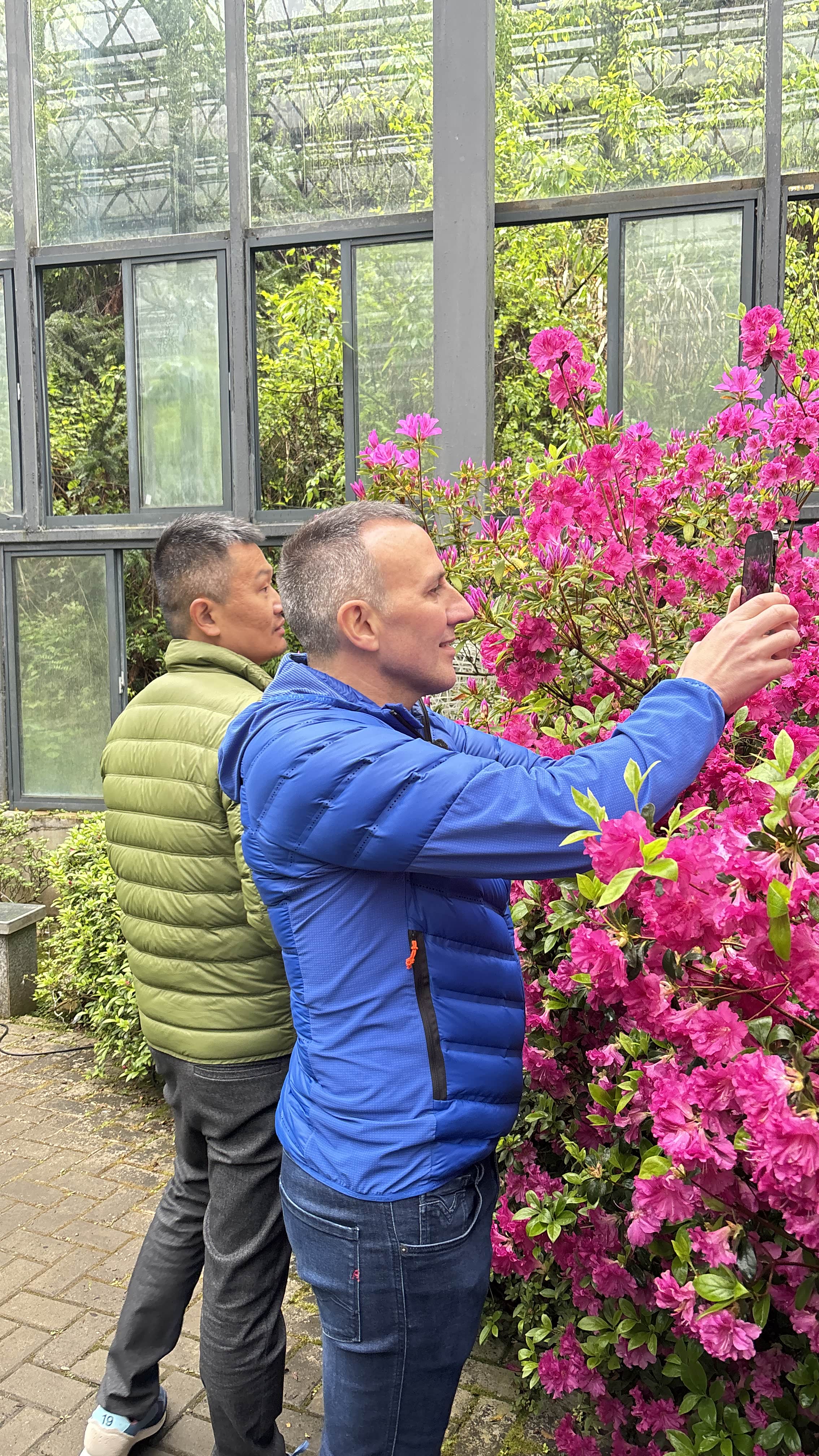 图1 桑切斯教授和刘存防博士欣赏杜鹃花