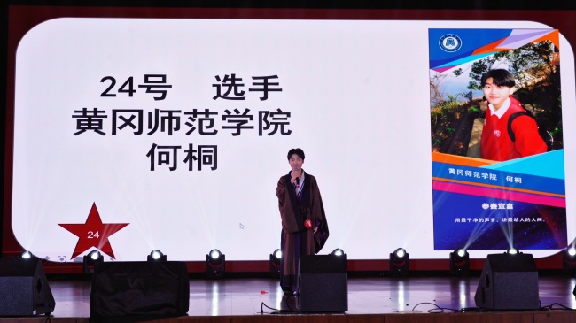 据悉,本次大赛由湖北省广播电视学会高校广播专业委员会与湖北经济学院联合主办,汇聚了华中科技大学、华中师范大学、华中农业大学等省内多所知名高校的36名选手同台竞技,决赛角逐激烈。为确保参赛成效,黄冈师范学院党委宣传部高度重视、精心部署,由黄师之声广播台按照大赛规则开展校内选拔,并邀请相关专业教师对选手进行悉心指导与系统培训,精准打磨主持技巧、优化表现细节,最终遴选出何桐同学代表学校参赛。
